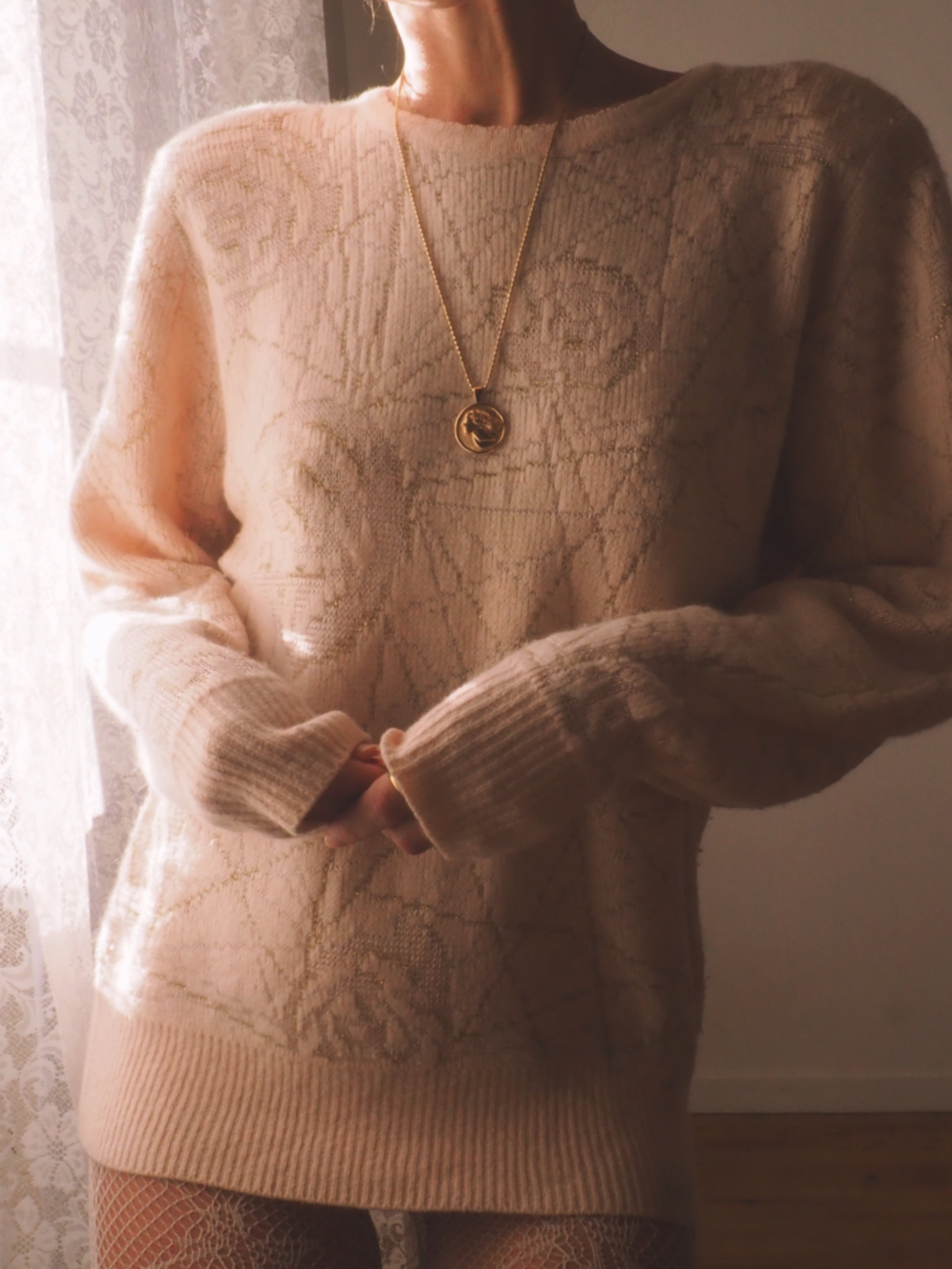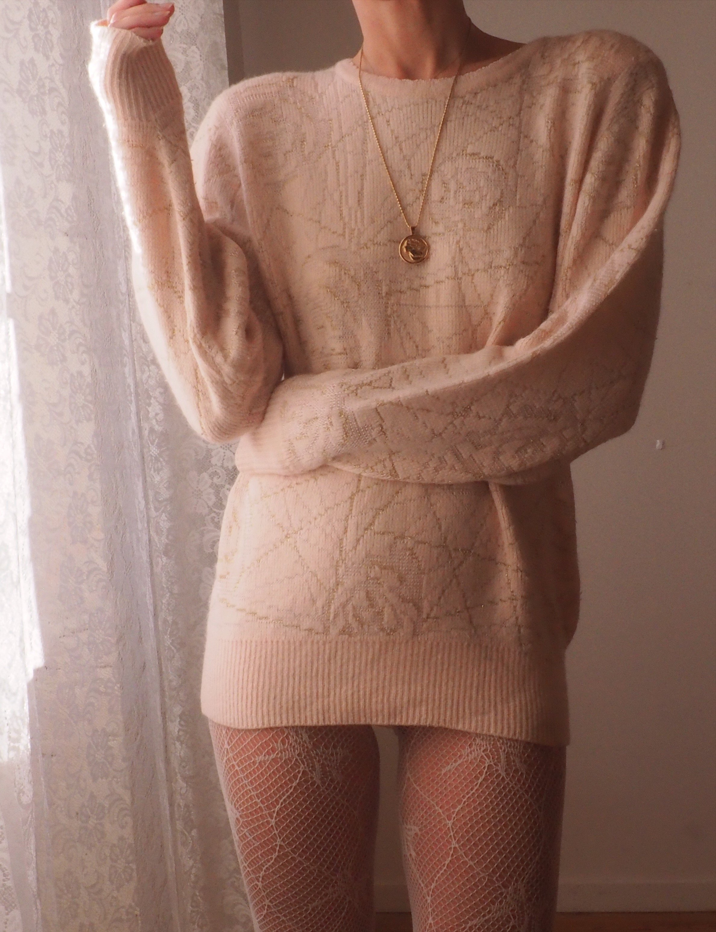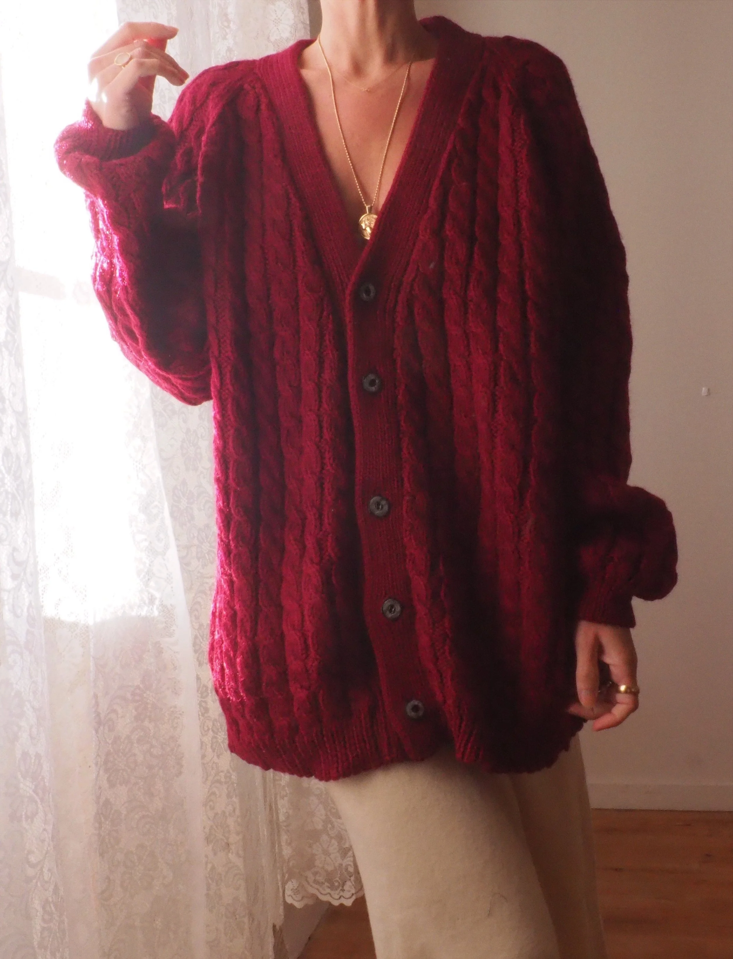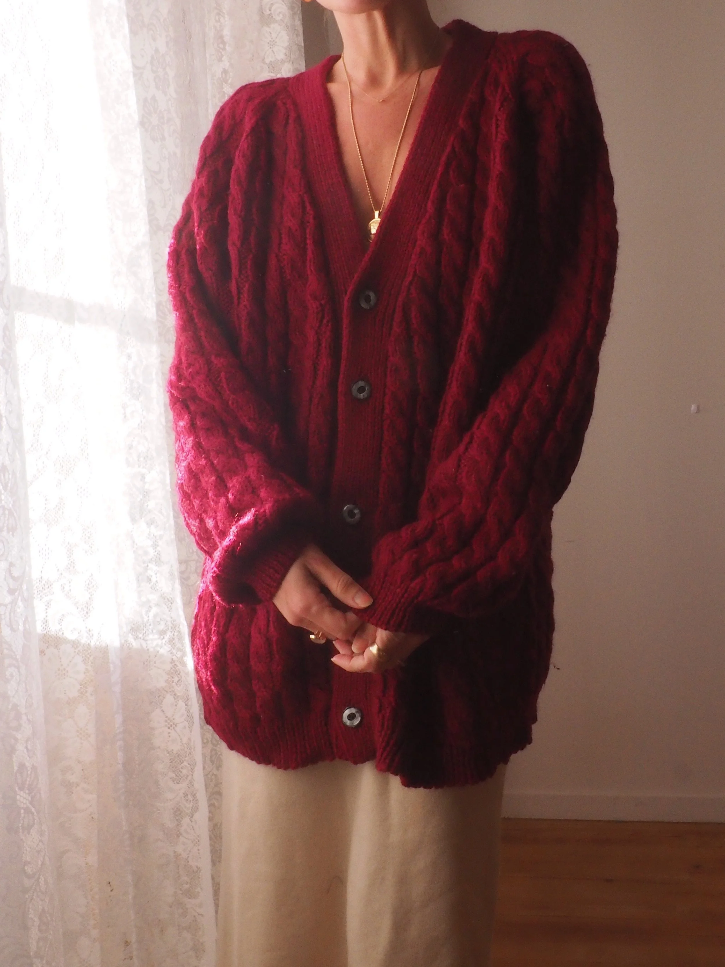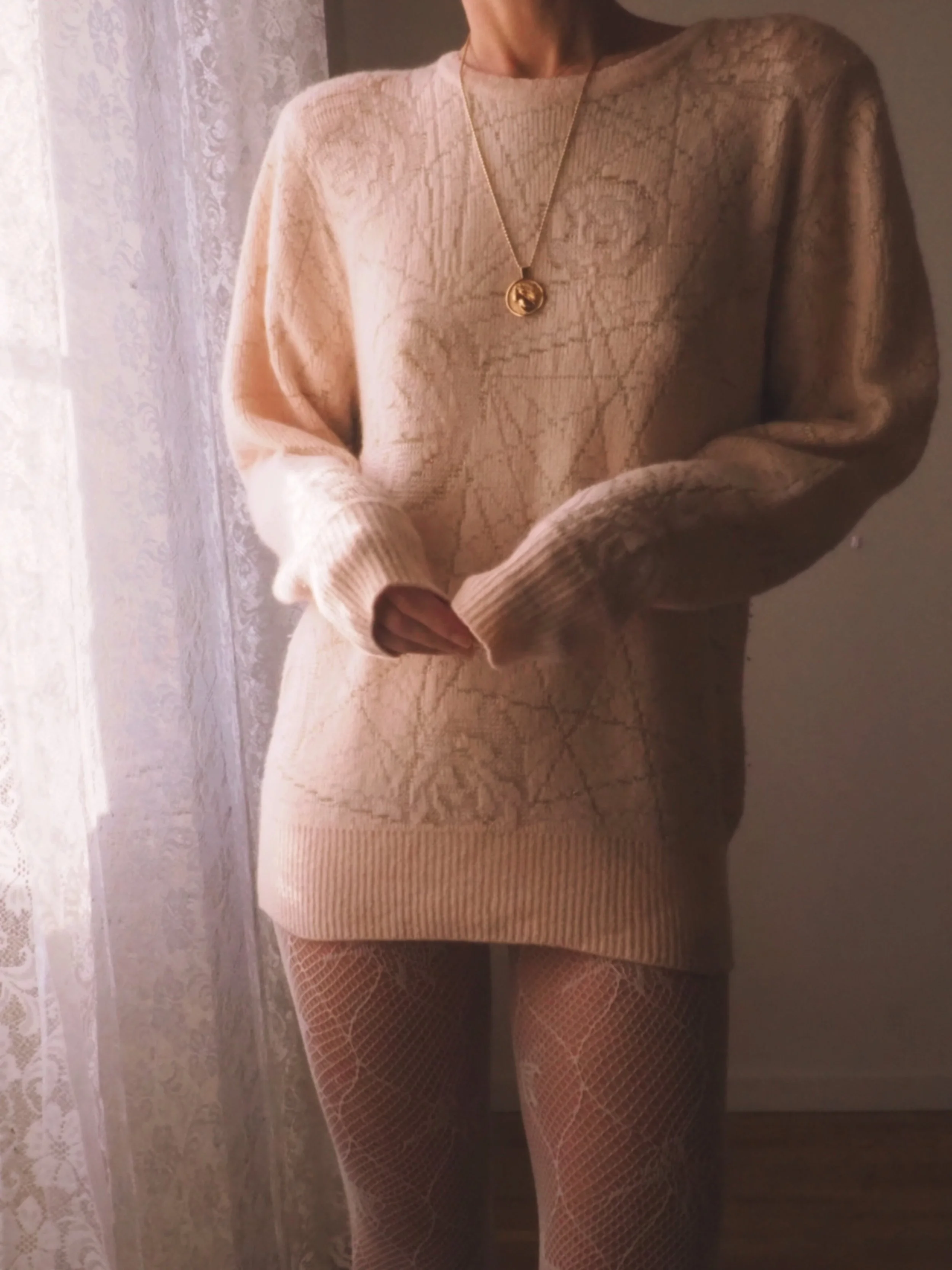 Warm vintage vanilla cream wool knit. Made in Ireland, 100% wool.
